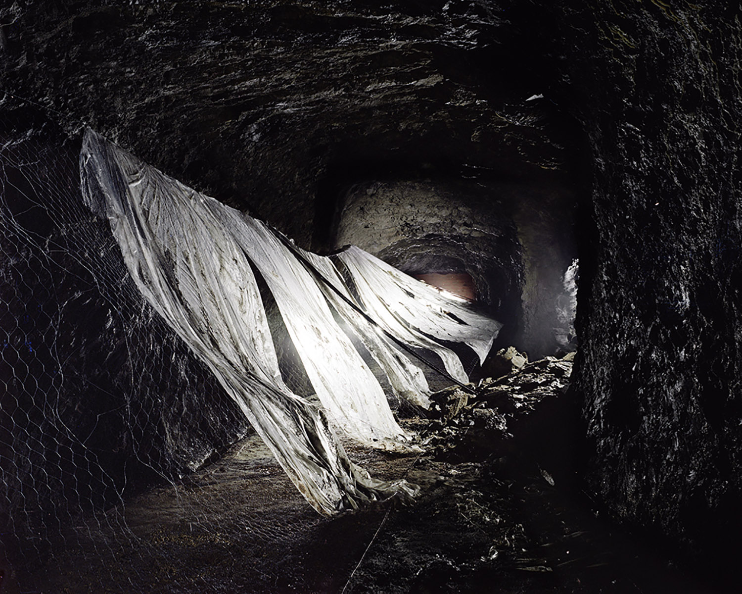 50 years later, photographers Jean-Noel Pazzi and Yannic Bartolozzi explore the remains of the deserted and neglected mountain-site. There behind a great metal gate inside the bowels of the mountain whispers a cool and dead air. The scent is humid and mineral. Like a siphon that sucks in a river, it growls awaiting the passersby. The tone is set. Alone. Here. The imaginary can still penetrate the darkness and live off the lost stories of the forgotten mines of Baulmes.