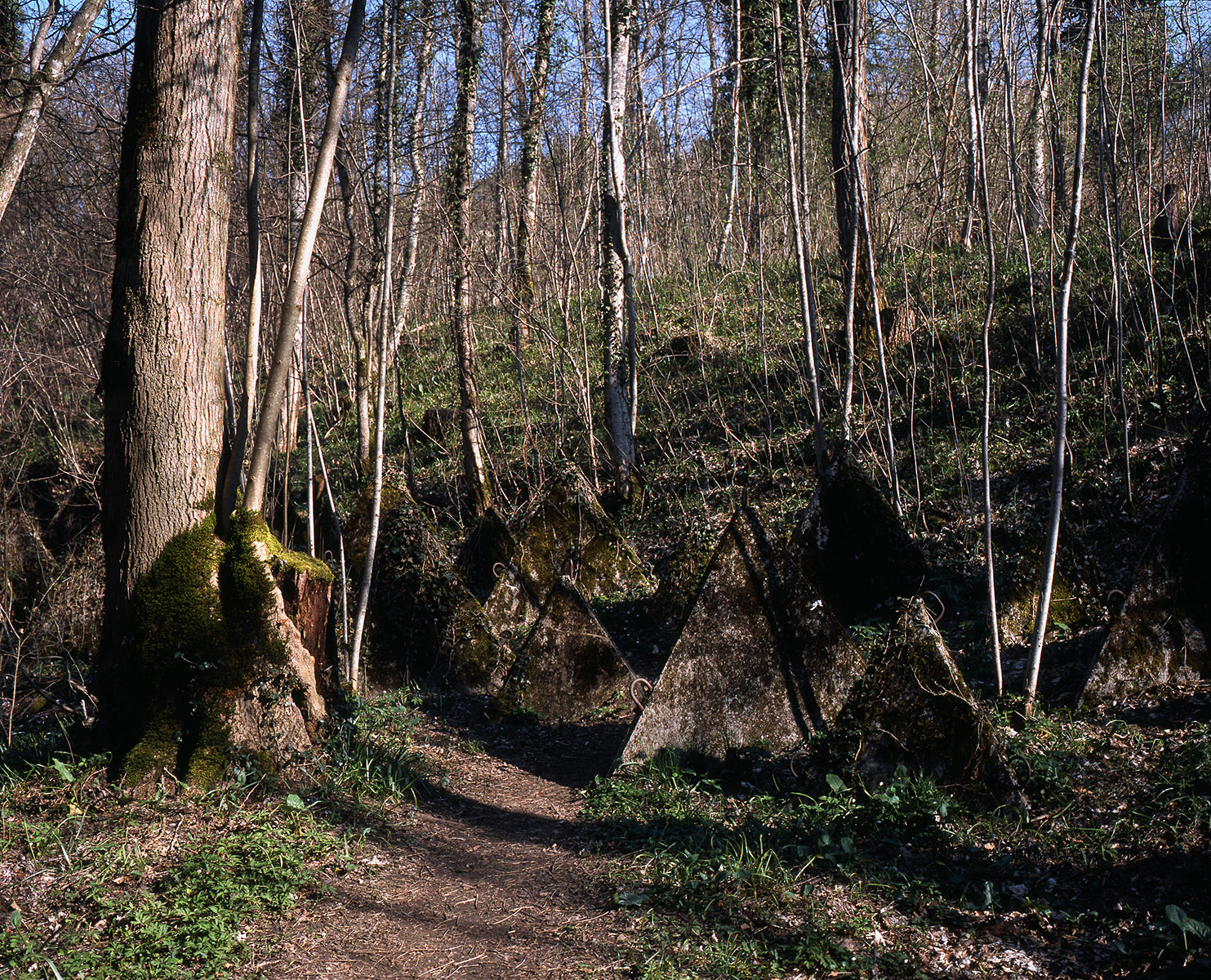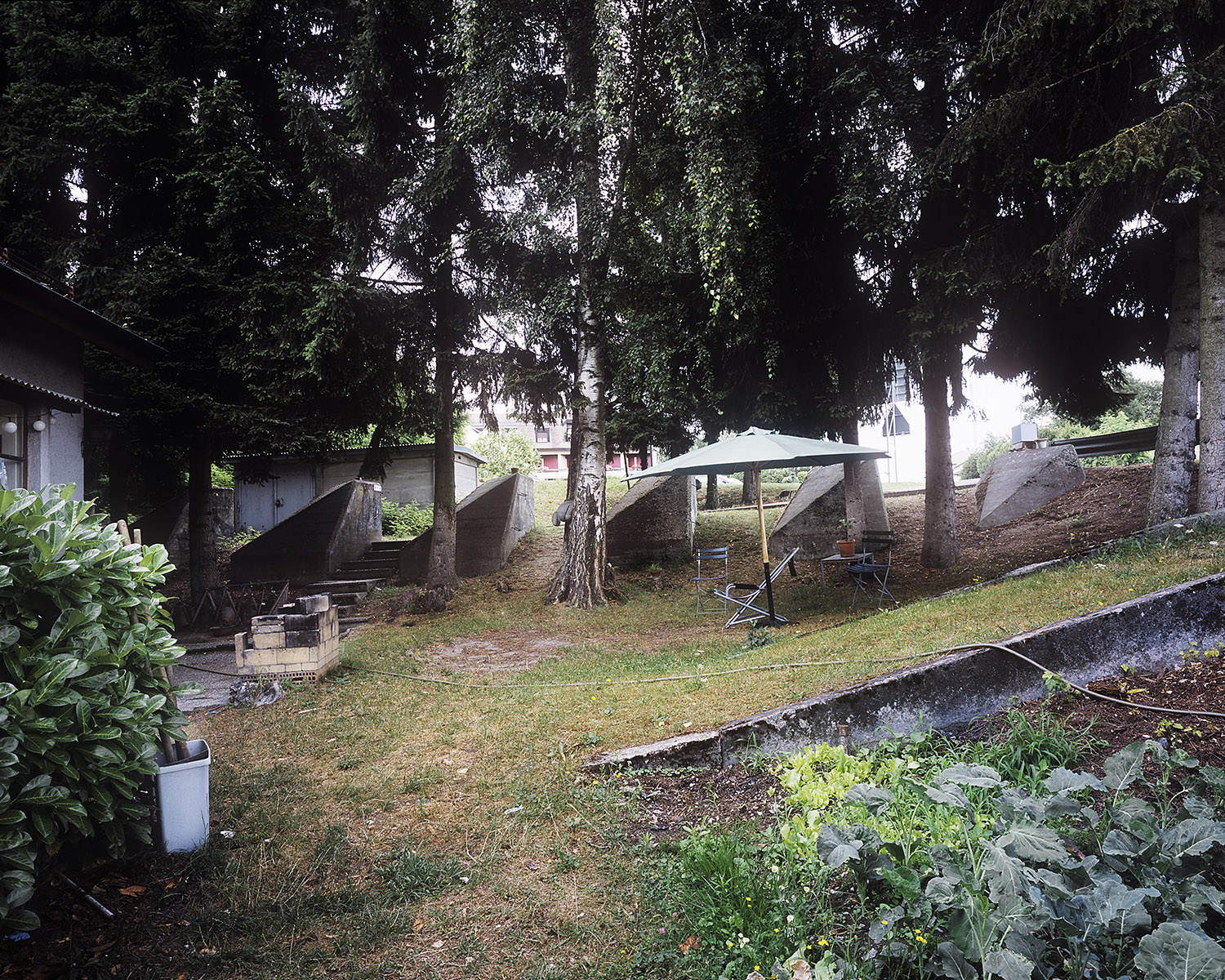 I am interested in the development of the landscape in parallel with Swiss culture. Because these objects have not been altered since their construction they become a type of ‘relic’ from the past. And so I use the photographic medium to extract these ‘relics’, to confront them to the present time and to show them in their state of integration within our contemporary daily life. Could there be a parallel between living alongside Toblerones and the feeling of connectedness to the past. Are these blocks of cement not national history after all?