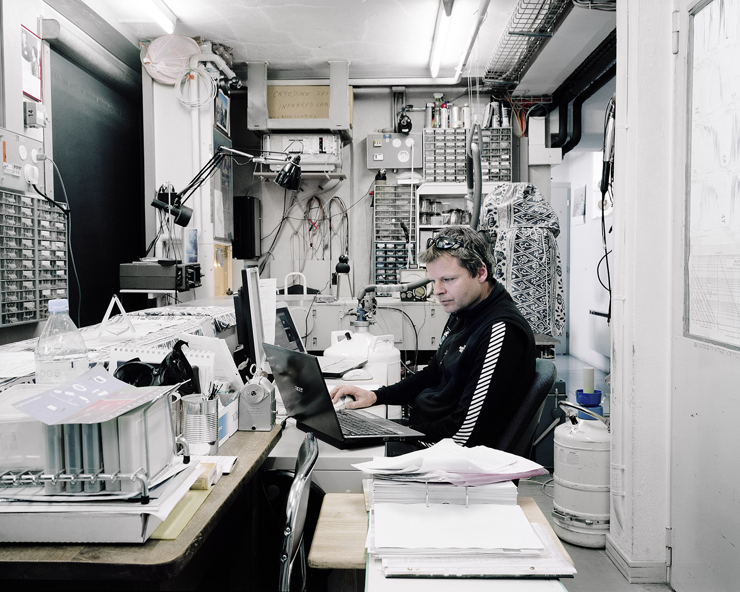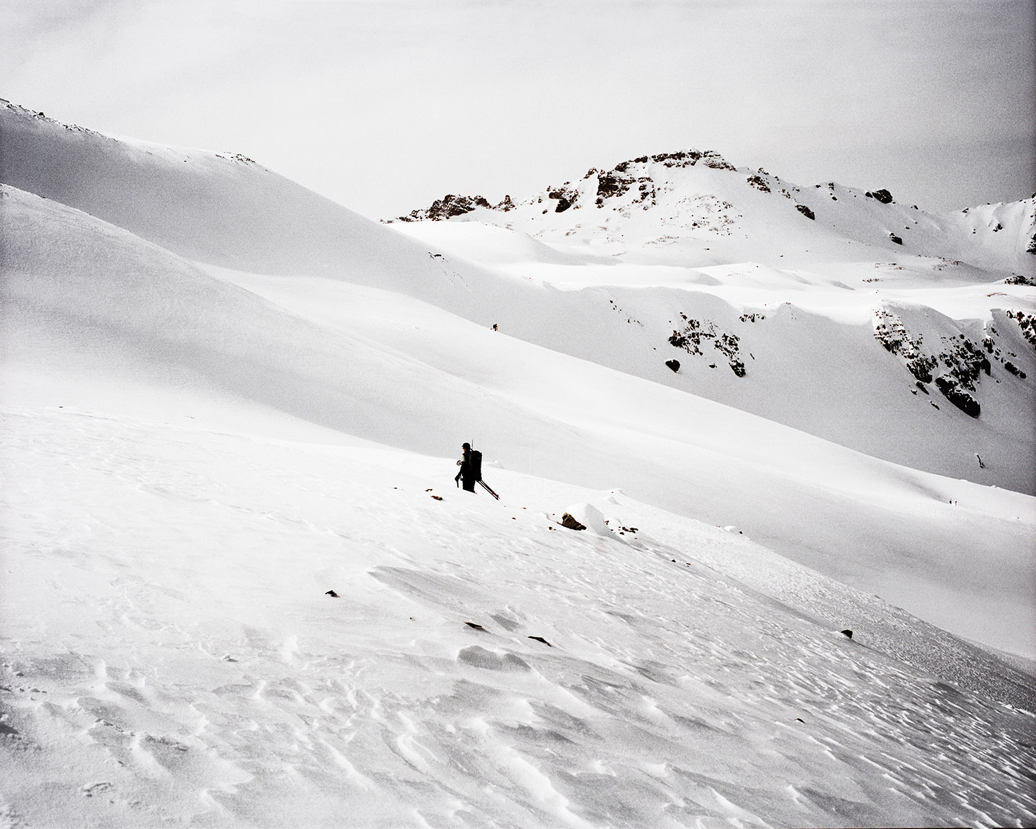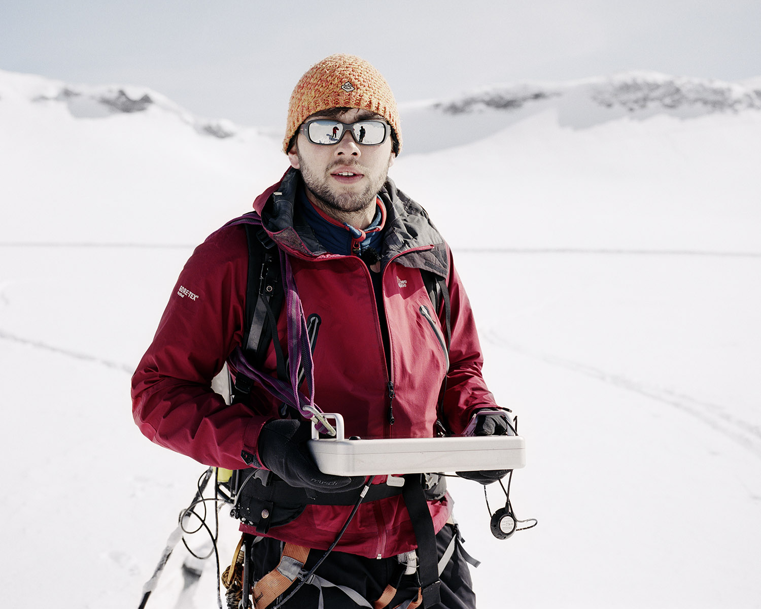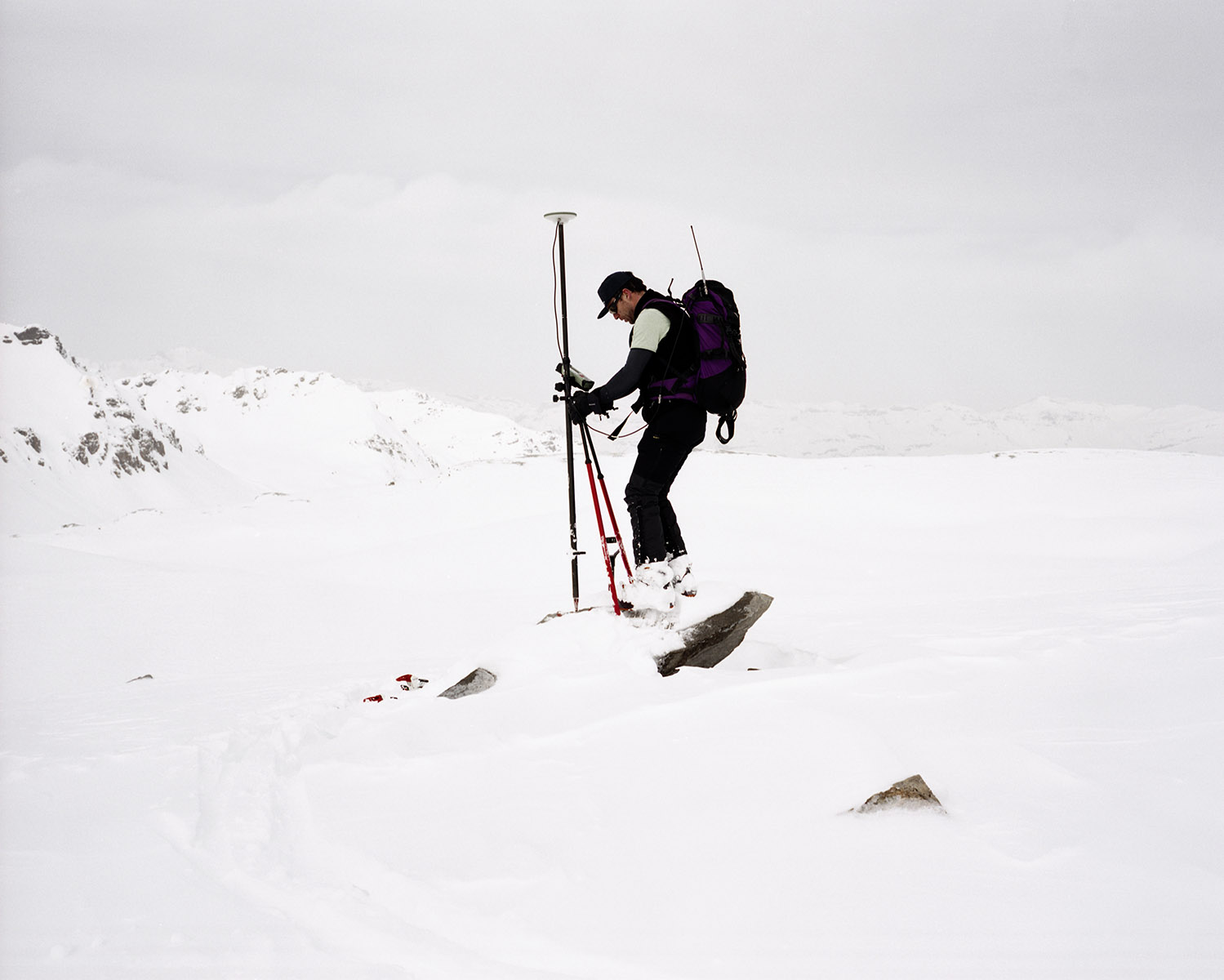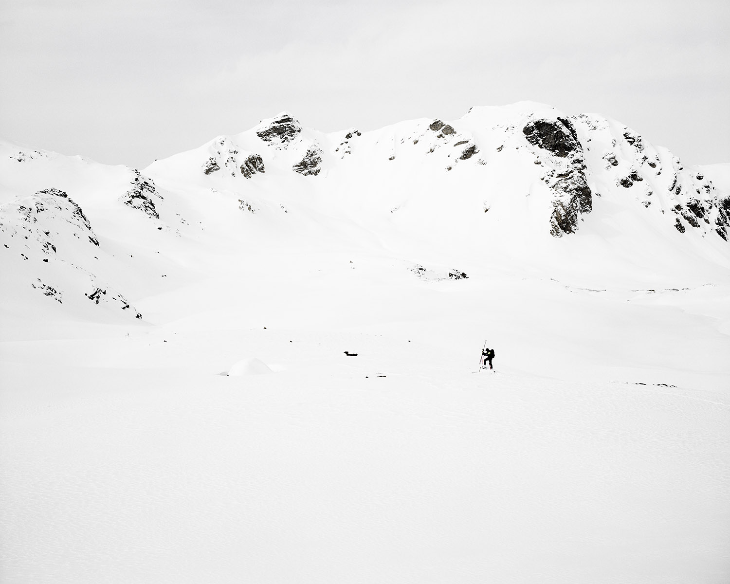 Yannic Bartolozzi s’est lancé le défi de suivre les pèlerins de la technique qui captent le solaire dans un paysage fait pour le brouillard. Les fourrures ont laissé la place au Goretex. L’alpiniste conquérant a sur sa poitrine le X du croisé de la technologie. Il semble égaré dans son ambition de comprendre, perdu dans l’immensité d’une feuille blanche où les hélicoptères se la jouent moustiques.